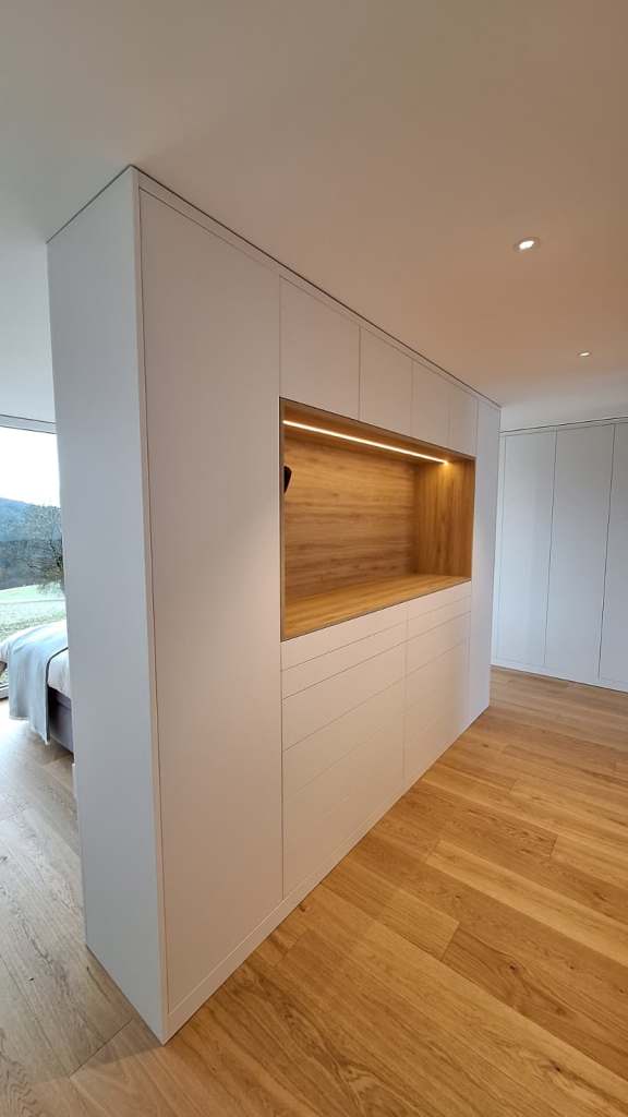 In unserer Schreinerei planen und fertigen wir individuelle Einbauschränke nach Maß, exakt abgestimmt auf Ihre Räume, Ihre Bedürfnisse und Ihren persönlichen Stil. Ob Schlafzimmer, Wohnzimmer, Flur, Ankleide oder Kinderzimmer – jeder Einbauschrank wird von uns passgenau entworfen und in handwerklicher Qualität gefertigt.