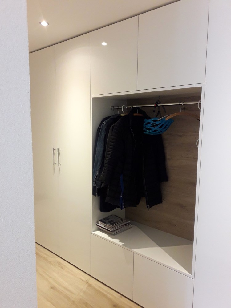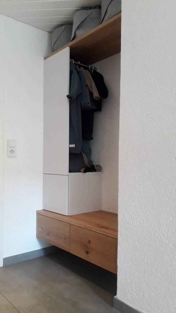 Nutzen Sie erstklassige Materialien und präzise Verarbeitung, um eine Garderobe zu erhalten, die nicht nur optisch ansprechend ist, sondern auch für Langlebigkeit steht. Egal, ob Sie viel Stauraum für Mäntel und Jacken wünschen oder eine schlichte, platzsparende Lösung bevorzugen – wir setzen Ihre Wünsche in die Tat um.