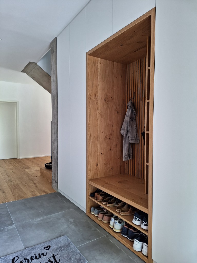 Mit einer maßgefertigten Garderobe gestalten Sie nicht nur einen funktionalen Raum, sondern schaffen ein einzigartiges Möbelstück, das perfekt zu Ihnen passt und Ihre Gäste empfängt. Lassen Sie sich von uns beraten, und gemeinsam entwerfen wir die Garderobe Ihrer Träume!